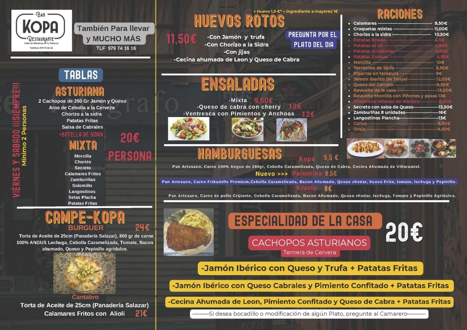 Estamos encantados, en nuestro Restaurante Bar Kopa, de ofrecerles un suculento menú para grupos en Palencia, preparado con todo el corazón, para todos los públicos, enfocado para cenas de empresas o comidas con compañeros o amigos.