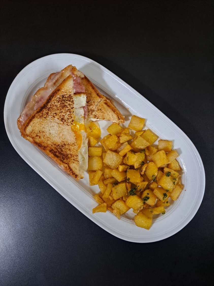 - Desayuno mediterráneo: Tortilla de patata con pan + Zumo + Café/Infusión